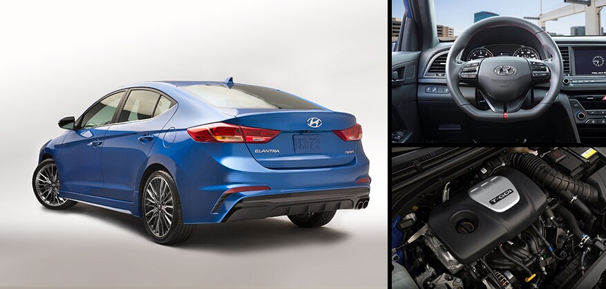 The most powerful Elantra model ever is here with improvements in powertrain, chassis, and style. Powered by a 1.6 Turbo GDI four-cylinder engine, the new 2017 Hyundai Elantra Sport generates more than 200 horsepower and 190 pound-feet of torque. Mated to this engine is your choice of two transmissions, a six-speed manual or a seven-speed Dual Clutch Transmission with paddle shifters.