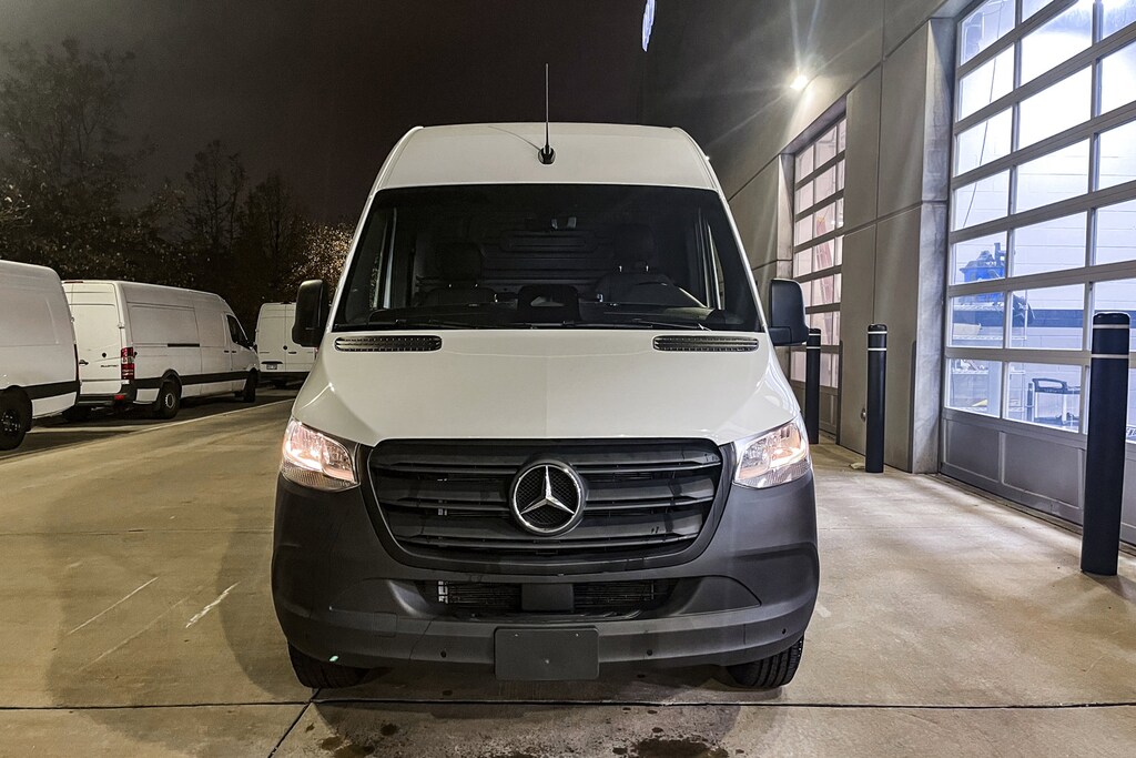 2025 Sprinter X Loaner in Arctic White/Black with Driver Convenience Package, Comfort Package, Drive Assist Package, Comfort Package (Seat Addition), MBUX Package, Leather Steering Wheel, Cargo Petition, 115V Socket, Active Distance Assist (DISTRONIC), Coat Hooks in Driver Cabin, Armrest/Drivers and Co-Drivers Door, Door-Mounted Assist Handles/Driver & Passenger, Assist Handles w/Partition, Assist Handle/Left Rear Door, Wood Floor with 6 D Rings, Side Wall Paneling Full Hardboard, Rear Doors/Opening to Side Wall & Bumper Step/Rear/Grey
