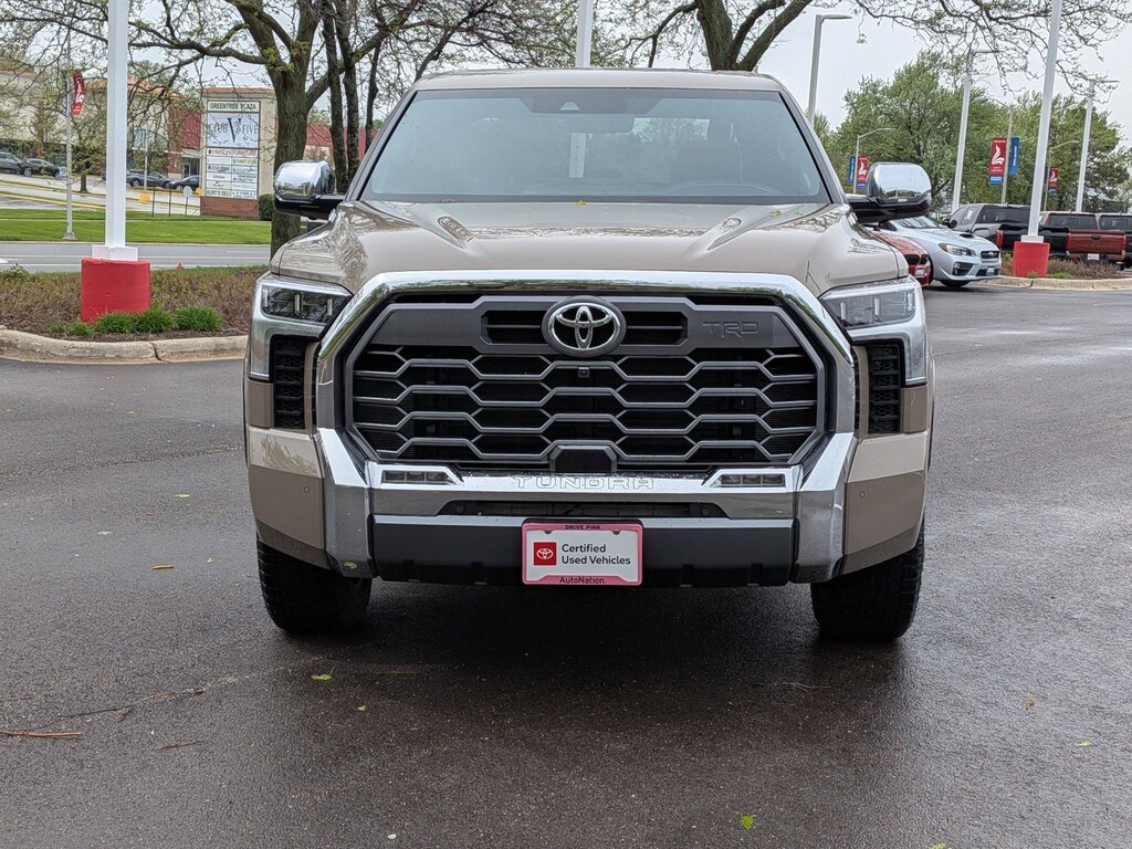 A Gold Certified PreOwned 2026 Toyota Tundra Hybrid 1794 Edition 4WD with only 1,456 miles delivers nearnew luxury, hybrid power, and serious capability, perfect for drivers who want premium comfort and rugged strength in one truck. The 2026 Tundra 1794 Edition Hybrid pairs a 3.4L twinturbo V6 hybrid engine producing 437 hp and 583 lbft of torque for exceptional towing and acceleration. It offers 4WD , a richly appointed interior with leather seating, heated/ventilated seats, premium audio , and advanced tech like Apple CarPlay, Android Auto, and Toyota Audio Multimedia . With a towing capacity of up to 11,380 lbs and features such as panoramic roof, running boards, and advanced safety systems , it blends power with refinement. Key Features 437hp hybrid twinturbo V6 4WD with advanced traction Up to 11,380lb towing capacity Premium leather interior & heated/ventilated seats 14inch touchscreen with modern connectivity Why Buy from AutoNation Toyota Libertyville AutoNation Toyota Libertyville offers transparent, hagglefree pricing , rigorous multipoint inspections , and trusted nationwide support. Their Gold Certified program adds extended warranty coverage , thorough reconditioning , and a smooth, customerfocused buying experience, ensuring confidence from the moment you drive off the lot.